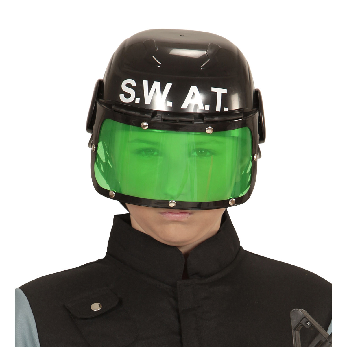 Dječja kaciga SWAT - vaš san o misiji s američkim specijalnim snagama konačno će se ostvariti. Kaciga ima vizir koji se skida, iznad piše SWAT. Kaciga je dječje veličine izrađena od plastike, unutarnja podstava od pjene, remen pod bradom s kopčom po duljini.