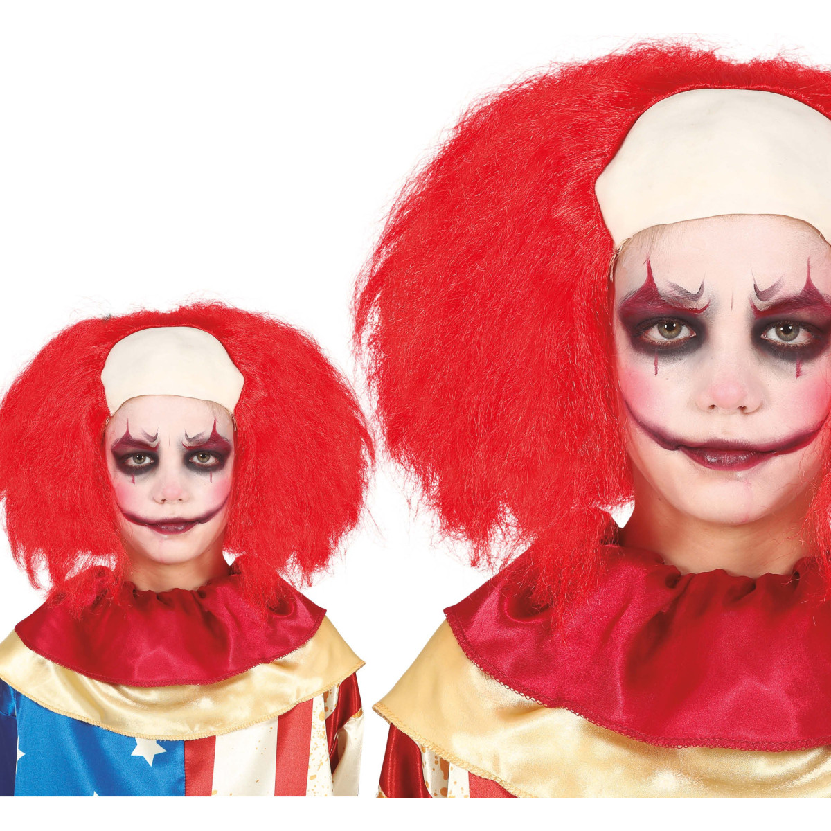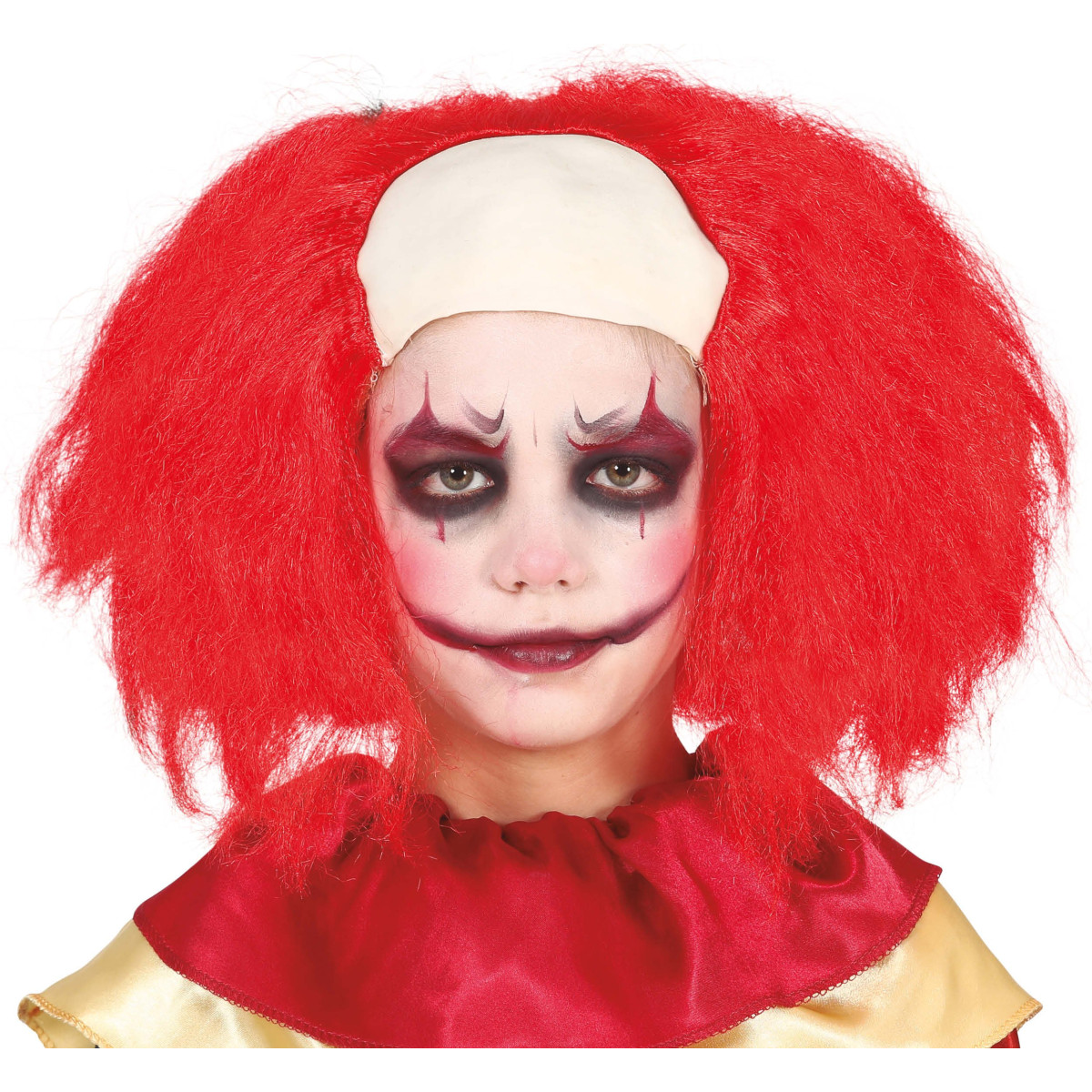 Dječja perika za klauna s plešom - čelom savršen je dodatak za male maškare koje žele potpuni klaunovski izgled. Vatreno crvena kosa i umetnuta pleša stvaraju zabavan, ali i pomalo strašan dojam koji će privući pažnju na svakoj zabavi. Perika je udobna za nošenje i idealna za karneval, rođendane ili tematske proslave.
