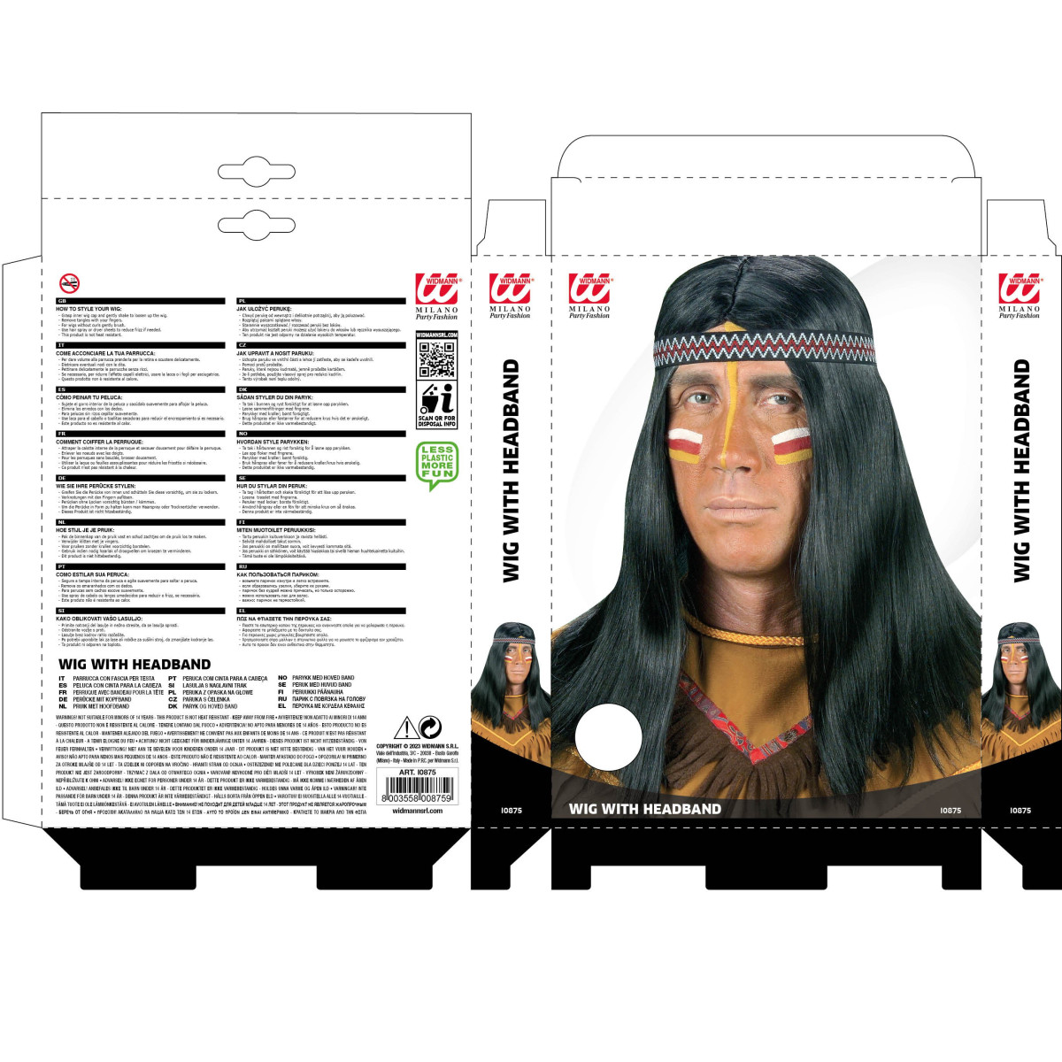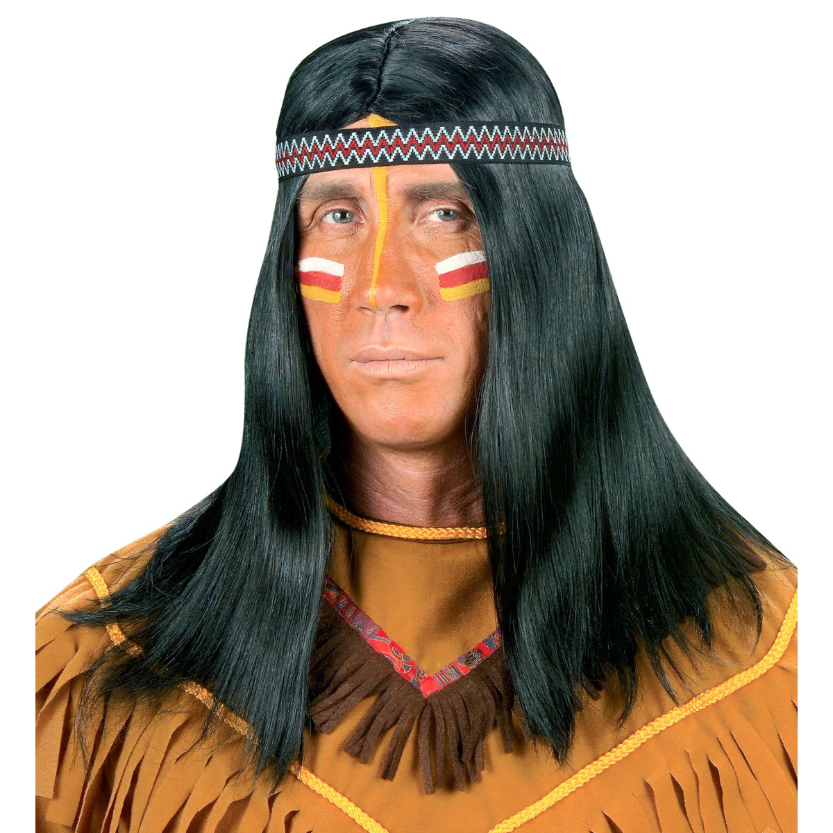 Dobrodošli na Divljem zapadu! Duga crna perika za Indijanca savršen je izbor za ulogu samouvjerenog indijanskog ratnika. Perika je pakirana u kutiji i uključuje trak za glavu s tradicionalnim indijanskim uzorkom. Dužina perike doseže do prsa.