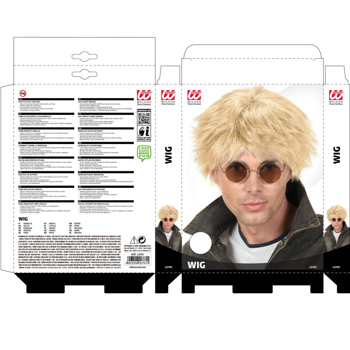 Uz mušku blond periku Beat, možete se pretvoriti u poznatu rock zvijezdu. U kombinaciji sa sunčanim naočalama postat ćete neprepoznatljivi. Znate što kažu; ljudi svijetle kose s više zabavljaju! Blond muška perika izvrsne je kvalitete i prirodnog izgleda. Muške karnevalske perike Beat pogodne su za momačke i druge muške zabave.