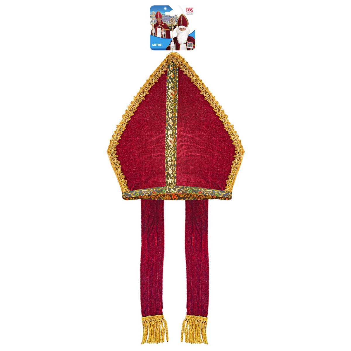 Pokrivač za Sv. Nikola - Mitra Widmann Pokrivač za svetog Nikolu je tradicionalna mitra, prepoznatljiv element odore ovog omiljenog sveca, ukrašena zlatnim i crvenim detaljima. Ima visoki stožasti oblik s naglašenim ornamentima koji simboliziraju crkvenu vlast i svetost. Ovaj mitra je savršen dodatak za blagdanske igre, kostime i obrede tijekom proslave svetog Nikole. https://balshop.hr/media/catalog/product/cache/7/image/9df78eab33525d08d6e5fb8d27136e95/k/a/kapa_za_miklavza_00078_1.jpg
