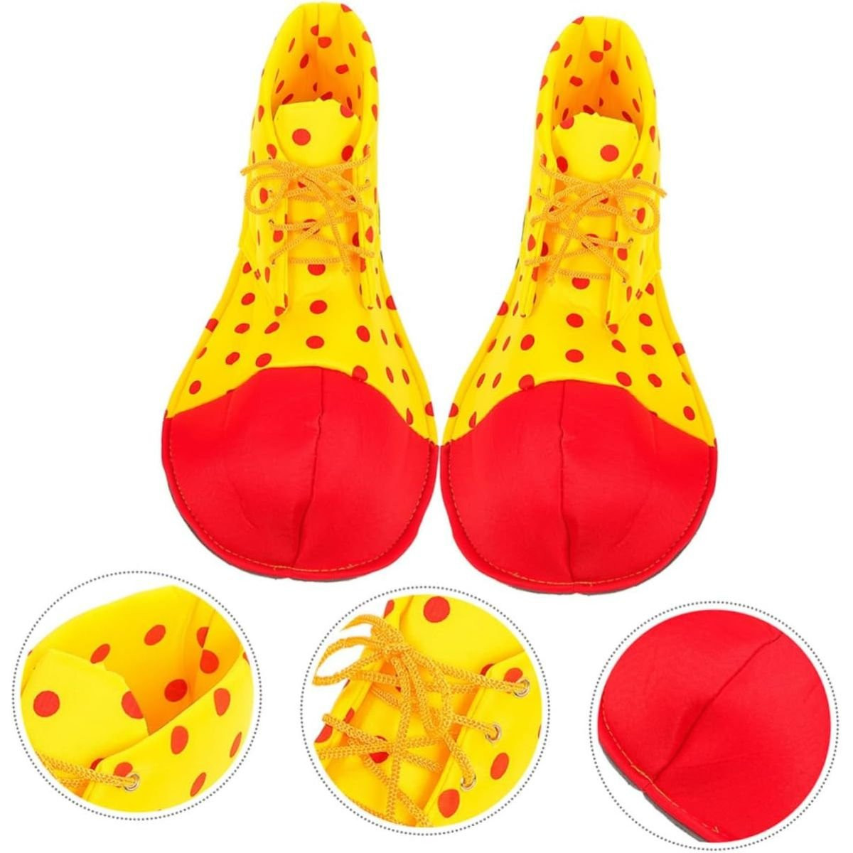Unesite smijeh i zabavu s ovim živahnim klaun cipelama koje će vašem karnevalskom kostimu dodati pravi klaunovski štih. Izrađene u klasičnoj kombinaciji žute i crvene boje sa zabavnim crvenim točkicama, ove su cipele nezaobilazan dodatak za svakog klauna.