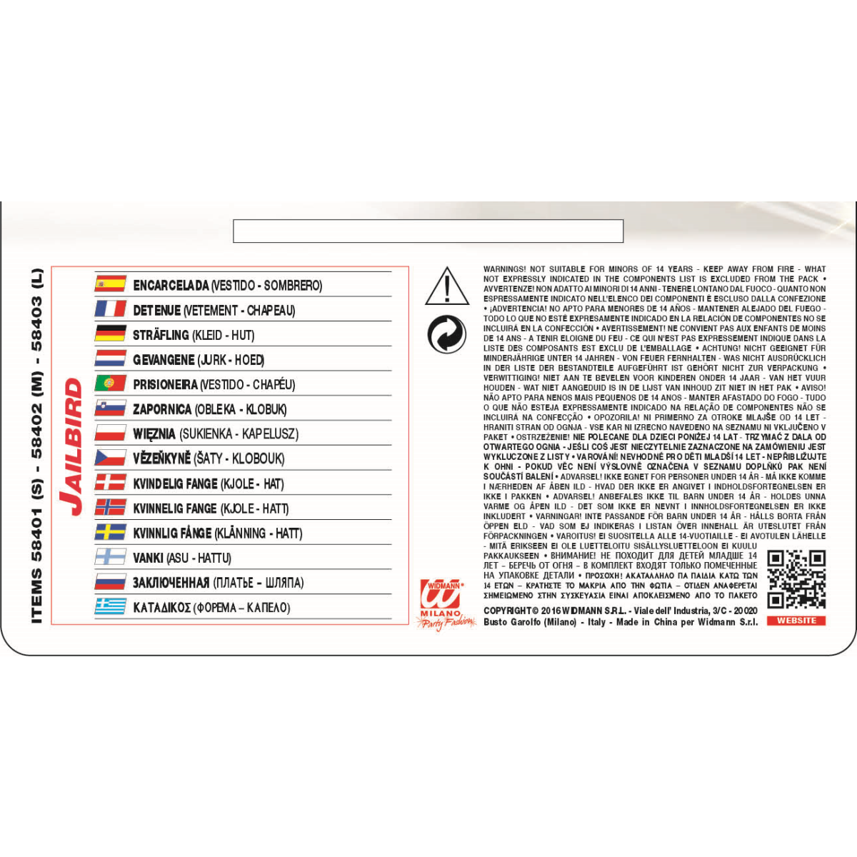 Kostim uključuje haljinu i prepoznatljivu zatvorsku kapu s crno-bijelim prugama. Za potpuni izgled prave zatvorenice preporučujemo dodatak – zatvorsku kuglu.
