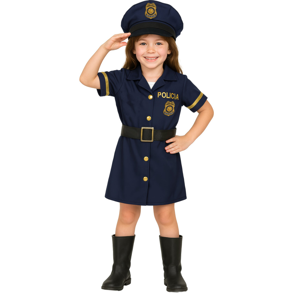 Dječji kostim policajke savršen je izbor za djevojčice koje žele ući u ulogu hrabre čuvarice reda. Jednodijelna tamnoplava haljina sa zlatnim gumbima, oznakom na prsima i odgovarajućom kapom daje realističan izgled prave policajke.