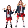Kad se u školi ugase svjetla, hodnici ožive… a među njima se pojavi vaša mala zombi školarka! Kostim uključuje poderanu jaknu s prišivenom košuljom, crvenu kariranu suknju, prugastu kravatu i bijele čarape koje izgledaju kao da ih je obojao pravi filmski majstor horora. Savršena kombinacija dječje razigranosti i zabavnog užasa!