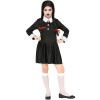 Karnevalski kostim slavne osobe iz popularne TV serije Addams Family - Wednesday. Kostim se sastoji od crne haljine s bijelom kragnom.