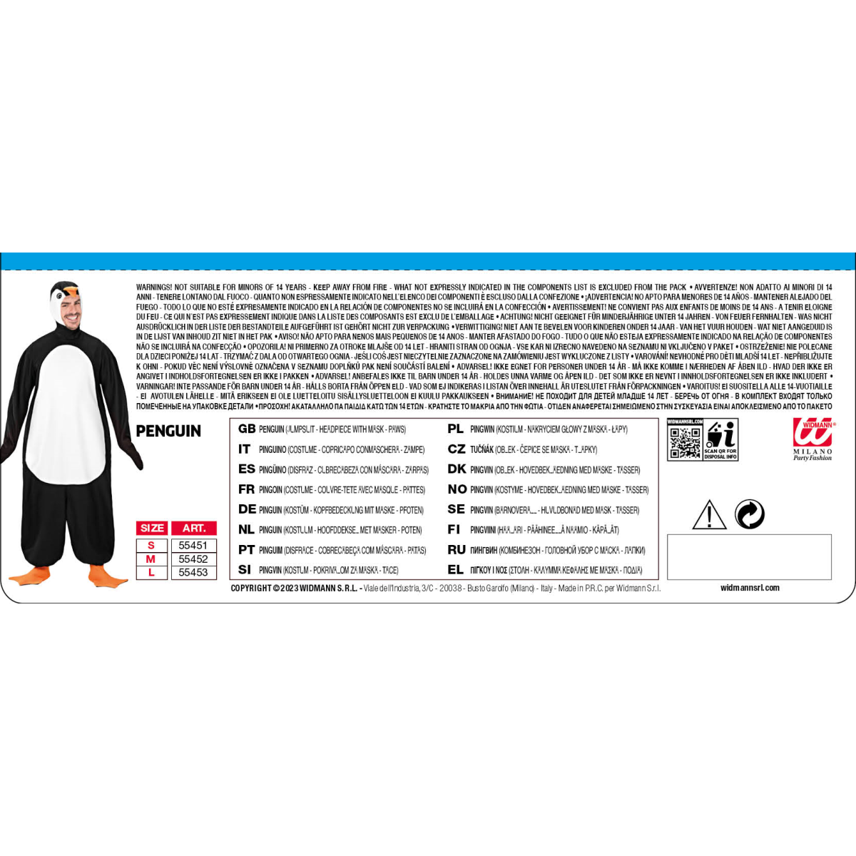 Ovaj prekrasni kostim pingvina ima sve što vam je potrebno da budete savršeni pingvin! Šarmantni crno-bijeli kombinezon seže do gležnjeva i dolazi s narančastim navlakama za cipele. Peraje imaju izreze na dlanovima tako da još uvijek možete koristiti ruke. Izgledat ćete sjajno u ovom kostimu pingvina. Savršen način da impresionirate svačije srce i unesete svečanu atmosferu. Pingvin karnevalski kostim izrađen je od mekog i udobnog materijala.