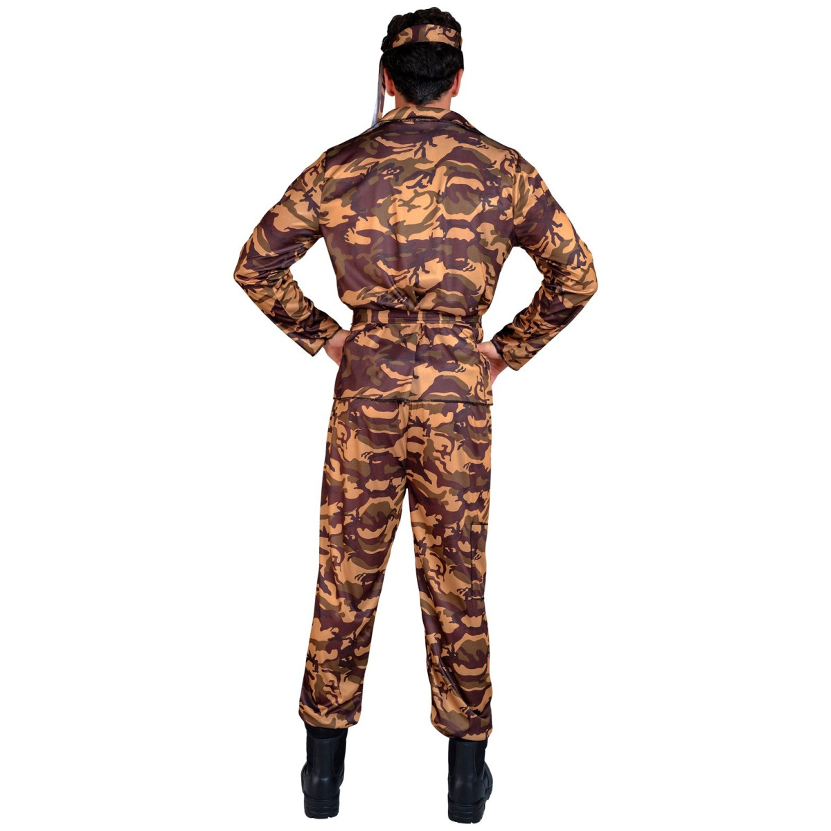 S ovim vojnim karnevalskim kostimom na svakoj ćete zabavi izgledati kao da ste upravo stigli s misije. Komplet sadrži maskirnu majicu i hlače, koje nadopunjuju remen i traka za glavu, što daje završni dodir vojničkom izgledu. Udoban dizajn i lagani materijali osiguravaju da kostim možete nositi satima bez ikakvih neugodnosti.