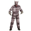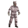 Muški karnevalski kostim vuka uključuje realističnu masku vuka koja prekriva prednji dio lica kako bi stvorila zastrašujući učinak. U kompletu se nalazi i odgovarajuća majica i hlače sa zanimljivim tiskom koji naglašava divlji izgled vuka. Rukavice nisu dio kostima, što omogućuje veću fleksibilnost u izboru dodataka.