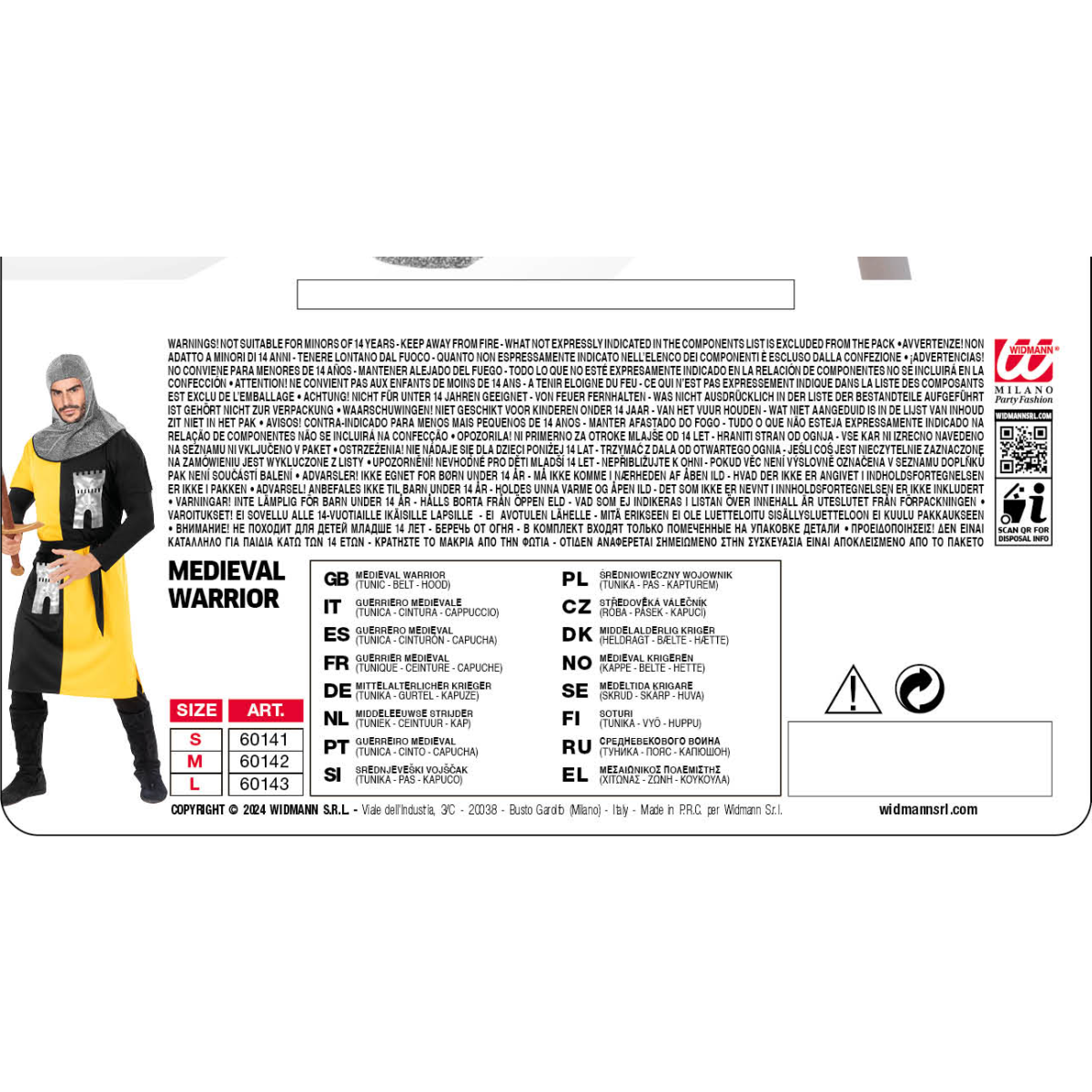 Kostim Viteza Križara inspiriran je snagom i hrabrošću srednjovjekovnih vitezova. Glavni dio ovog prekrasnog kostima je crno-žuta tunika koja ide preko koljena i ističe vašu snažnu figuru. Tunika je izrađena od kvalitetnog materijala koji osigurava udobnost i fleksibilnost tijekom nošenja. Na prednjoj strani tunike oslikana je tvrđava koja simbolizira snagu i čvrstoću viteškog reda. Kostim viteza također uključuje tuniku, pojas i pokrivalo za glavu. Pokrivalo pokriva glavu i vrat i proteže se do ramena, omogućujući vam da se potpuno uživite u ulogu viteza.