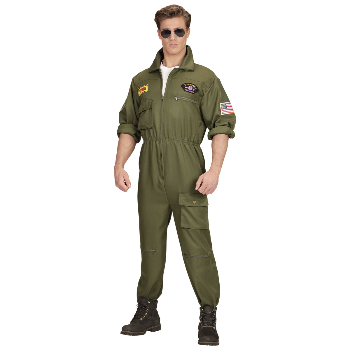 Uz ovaj Top Gun karnevalski kostim osjećat ćete se spremnima da uskočite u kokpit! Kostim je u maslinasto zelenoj boji. Kombinezon ima dugački patentni zatvarač sprijeda za lakše oblačenje. Zakrpe na prsima i rukavima čine kostim vidljivijim. Na vrhu ima zakrpu "Top Gun" koja upotpunjuje izgled.