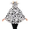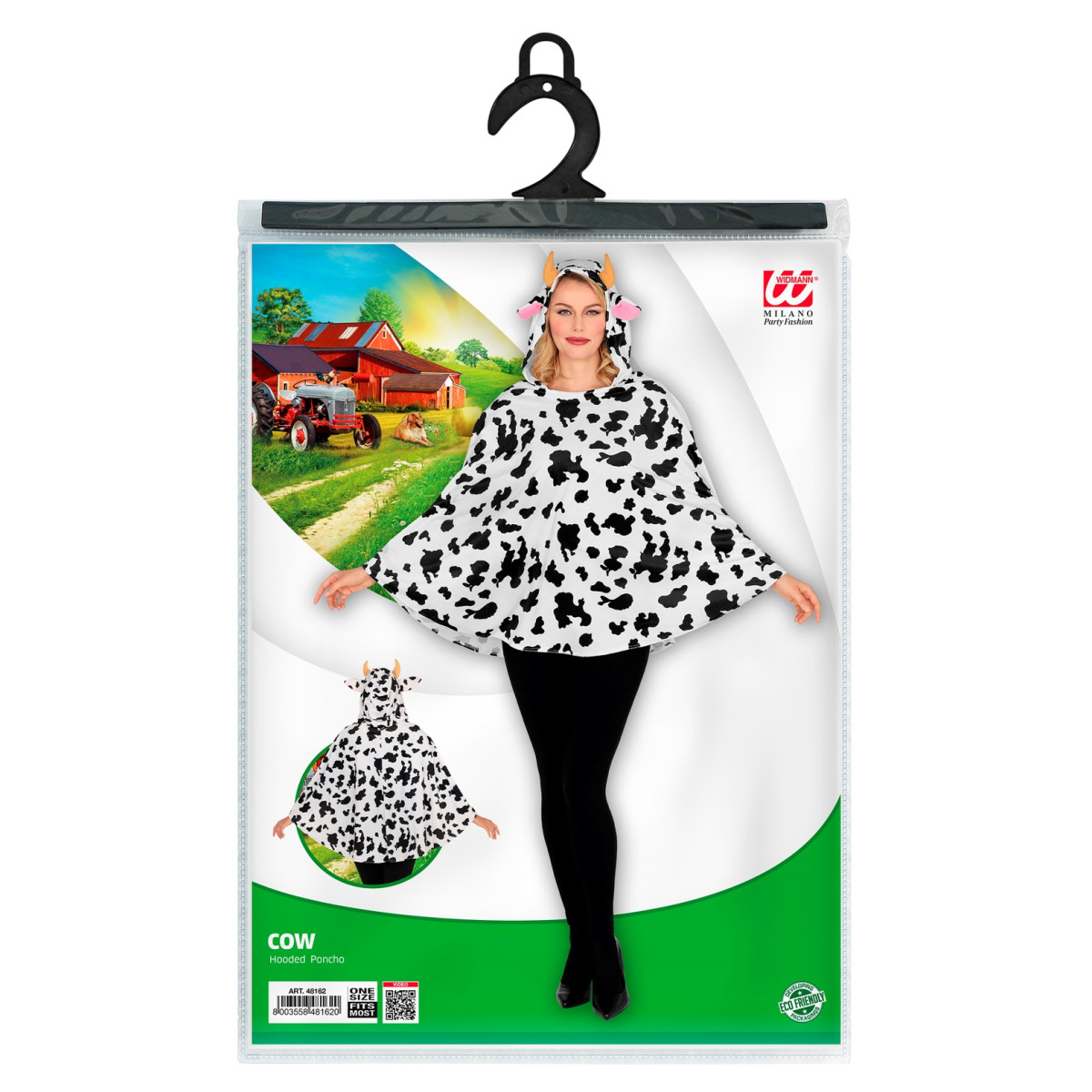 Kostim krave ima jedinstveni crno-bijeli uzorak pikova koji oponašaju kravlju kožu. Kapuljača ima uši i rogove. U obliku kravlje glave, što osigurava savršeno završen izgled. Ovaj kostim je oblikovan poput ponča koji elegantno obuhvaća vaše tijelo, a istovremeno pruža slobodu kretanja i udobnost. Kostim se lako nosi preko glave i prilagođava različitim postavama. Veličina je univerzalna.
