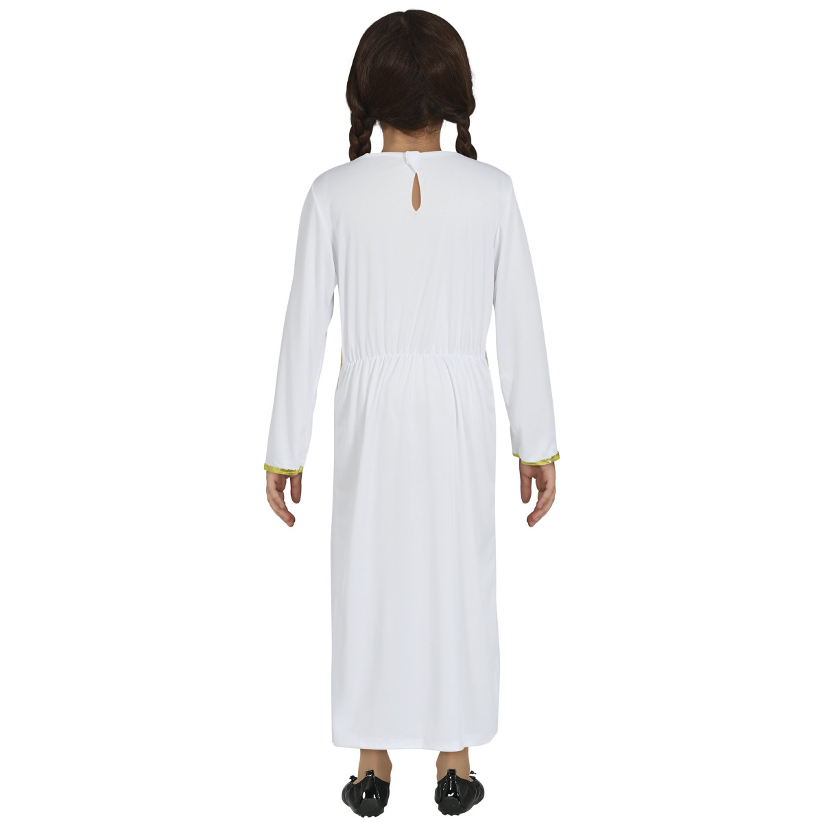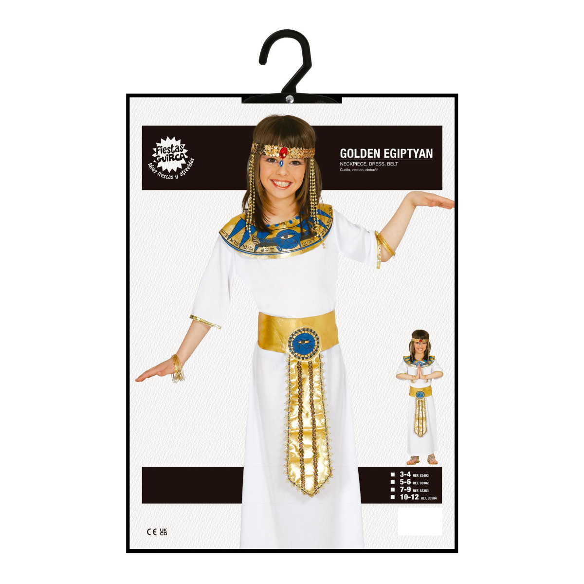 Dječji maškarani kostim Kleopatre odvest će svaku djevojčicu u tajanstveni svijet drevnog Egipta. Kostim uključuje dugu bijelu haljinu, ukrašeni zlatni pojas i raskošni ovratnik s plavo-zlatnim detaljima koji naglašavaju kraljevski izgled. Elegantni dodaci i udoban kroj omogućuju djetetu nesmetano kretanje i potpuno uživljavanje u ulogu egipatske kraljice.