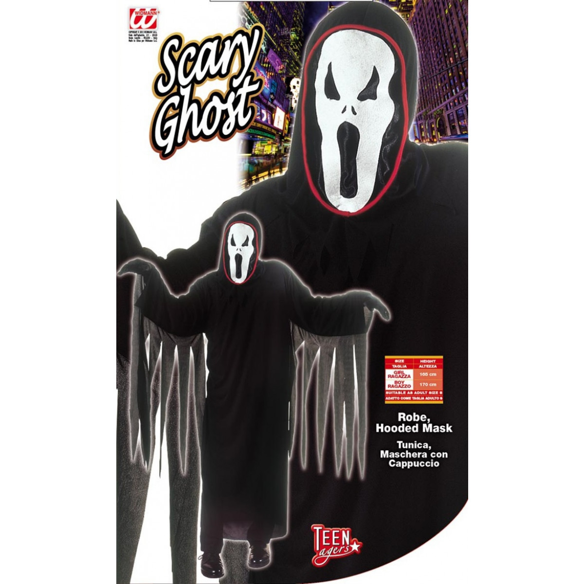 Kostim za strašnog duha je u crnoj boji. Dugačka tunika ima duge rukave s kojih vise dugi komadi tkanine. Maska zastrašujućeg motiva posebna je značajka ovog kostima, jer definitivno nikoga nećete ostaviti ravnodušni. Kostim pogodan za maškare i Noć vještica.