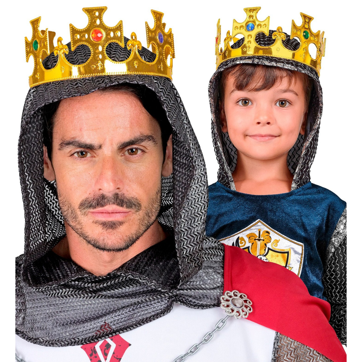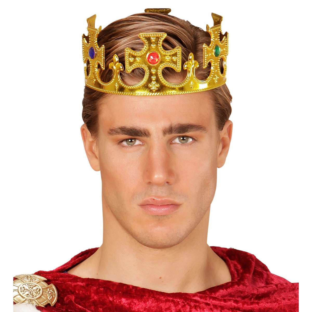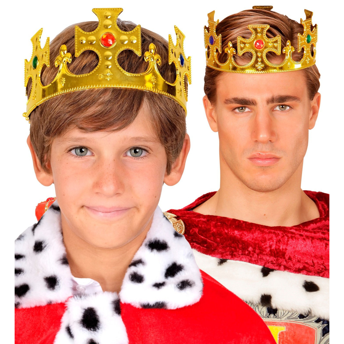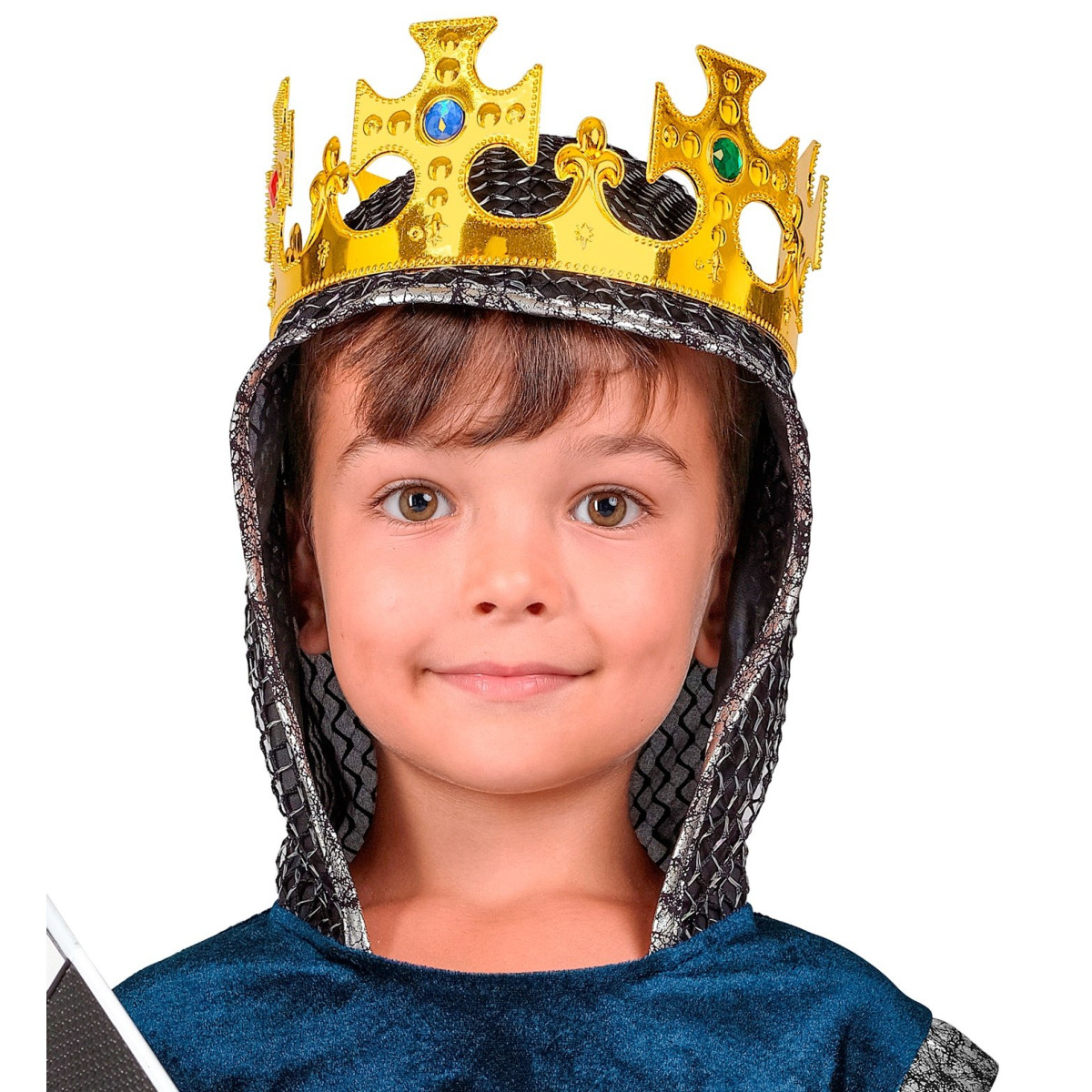 Kraljevska kruna je nezamjenjiv dodatak za svaki kraljevski izgled – bilo da se radi o maškarama, karnevalu, tematskoj zabavi ili kazališnoj predstavi. Kruna je zlatne boje i ukrašena šarenim draguljima koji joj daju raskošan i profinjen izgled. Zahvaljujući podesivoj veličini, prikladna je i za odrasle i za djecu. S ovom krunom zasjat ćete na svakom događaju kao pravi kralj.