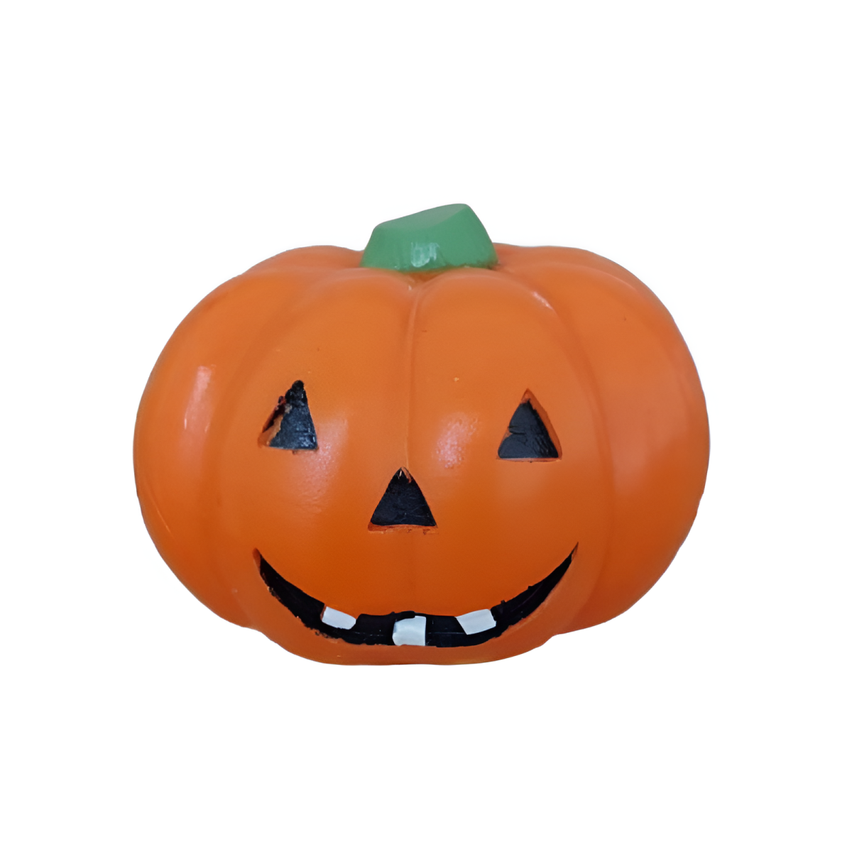 Ova keramička bundeva prekrasan je ukras za jesensku dekoraciju ili Noć vještica. Izrađena je kao savršena imitacija prave bundeve, sa svijetlonarančastom bojom koja vjerno prikazuje prirodan izgled zrele bundeve. Ručno je oslikana – ima širok osmijeh s bijelim zubima, trokutaste oči i nos, što joj daje zabavan i simpatičan izgled. S dimenzijama od 10 cm širine i 6 cm visine, idealna je za ukrašavanje stolova, polica ili prozorskih dasaka. Ova keramička bundeva unosi toplinu i sezonski ugođaj u svaki dom.