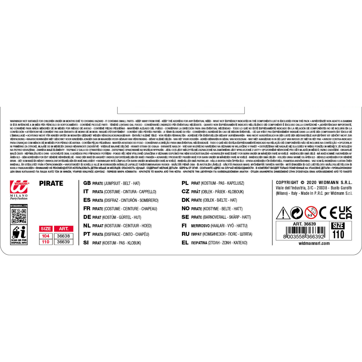 Upozorenje o dobnom ograničenju isključuje veličinu 104 cm.