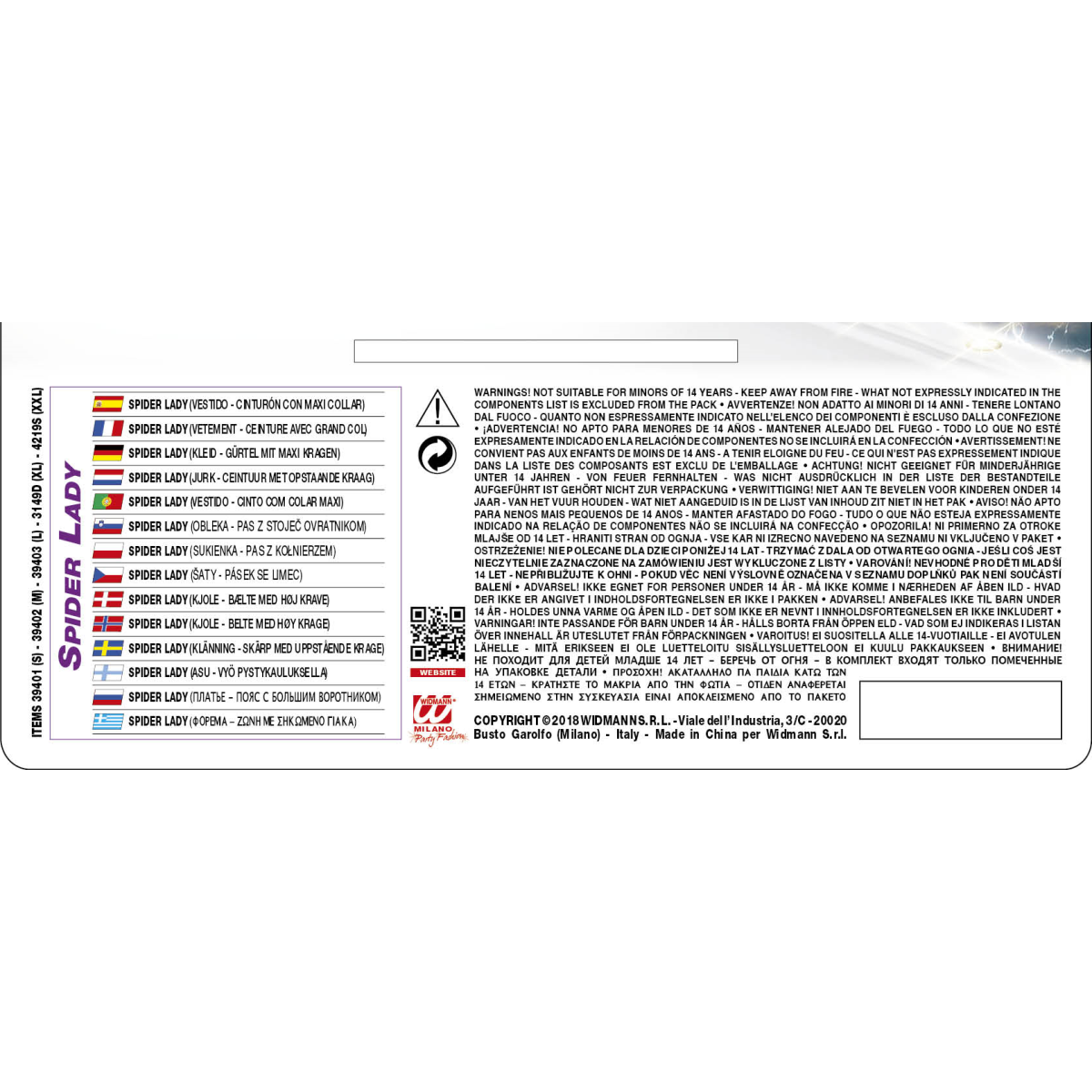 Koliko ekstravagancije imate? Ako se želite izdvojiti od prosjeka na ovogodišnjoj karnevalskoj povorci, kostim Paukove dame bit će pravi izbor. S ovom ćete haljinom žariti i na događaju za Noć vještica. Pojas s motivom zlatnog pauka proteže se u prepoznatljivu veću ogrlicu oslikanu paukovom mrežom. Kostim sadrži haljinu, pojas s ovratnikom.