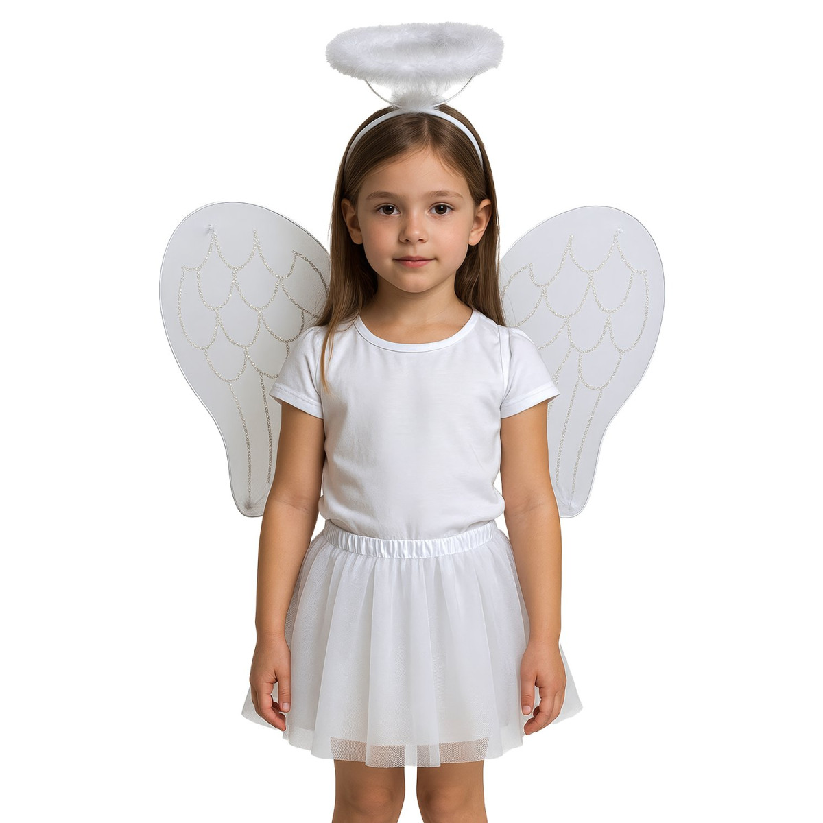 Anđeoski dječji set prekrasan je izbor za djevojčice koje žele zablistati kao mali anđeli. Komplet sadrži bijelu tutu suknju, lagana krila i aureolu za potpun anđeoski izgled. Idealan je za maškare, dječje predstave ili kao anđeoska pratnja Svetog Nikole.