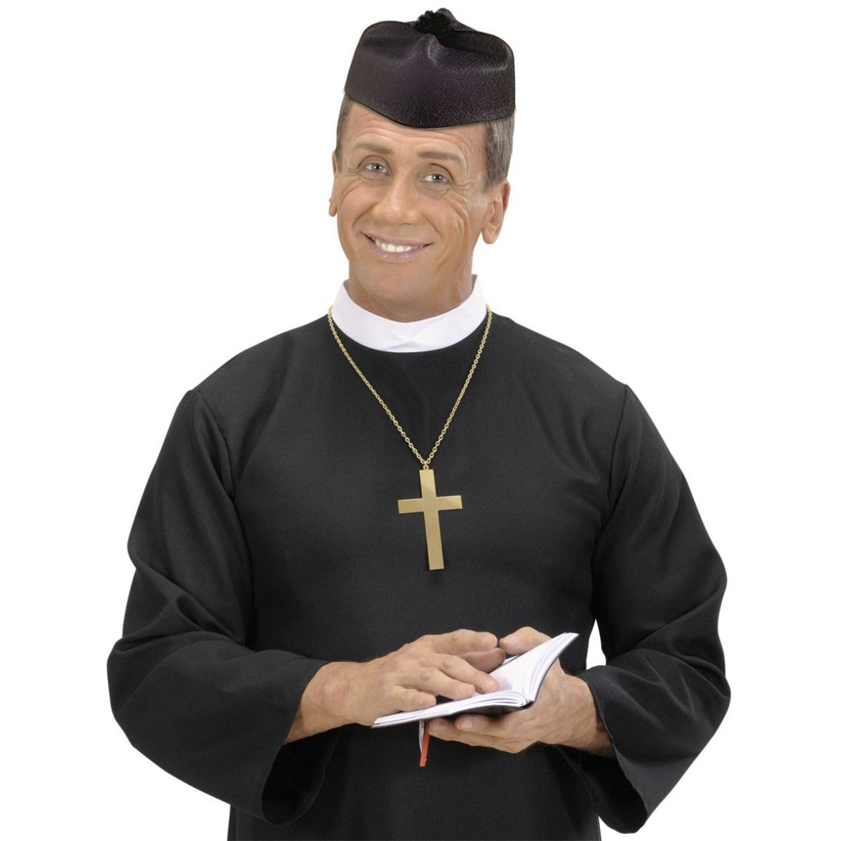 Svećenički šešir kvalitetan je karnevalski dodatak koji se savršeno uklapa uz kostim svećenika. Prikladan je za odrasle (muškarce i žene). Šešir je lagan, udoban i pristaje svim veličinama glave. Izrađen je od čvrstog crnog filca.