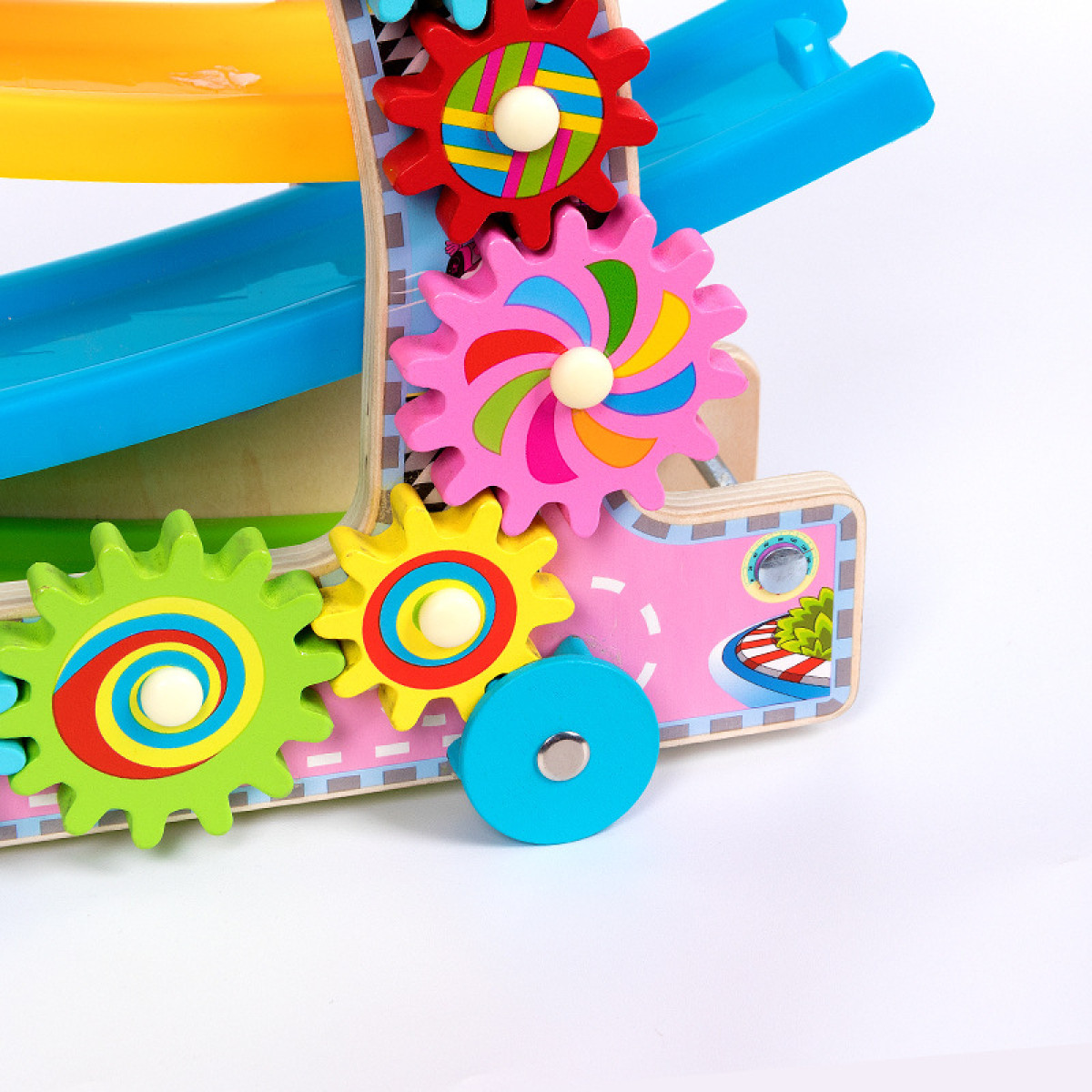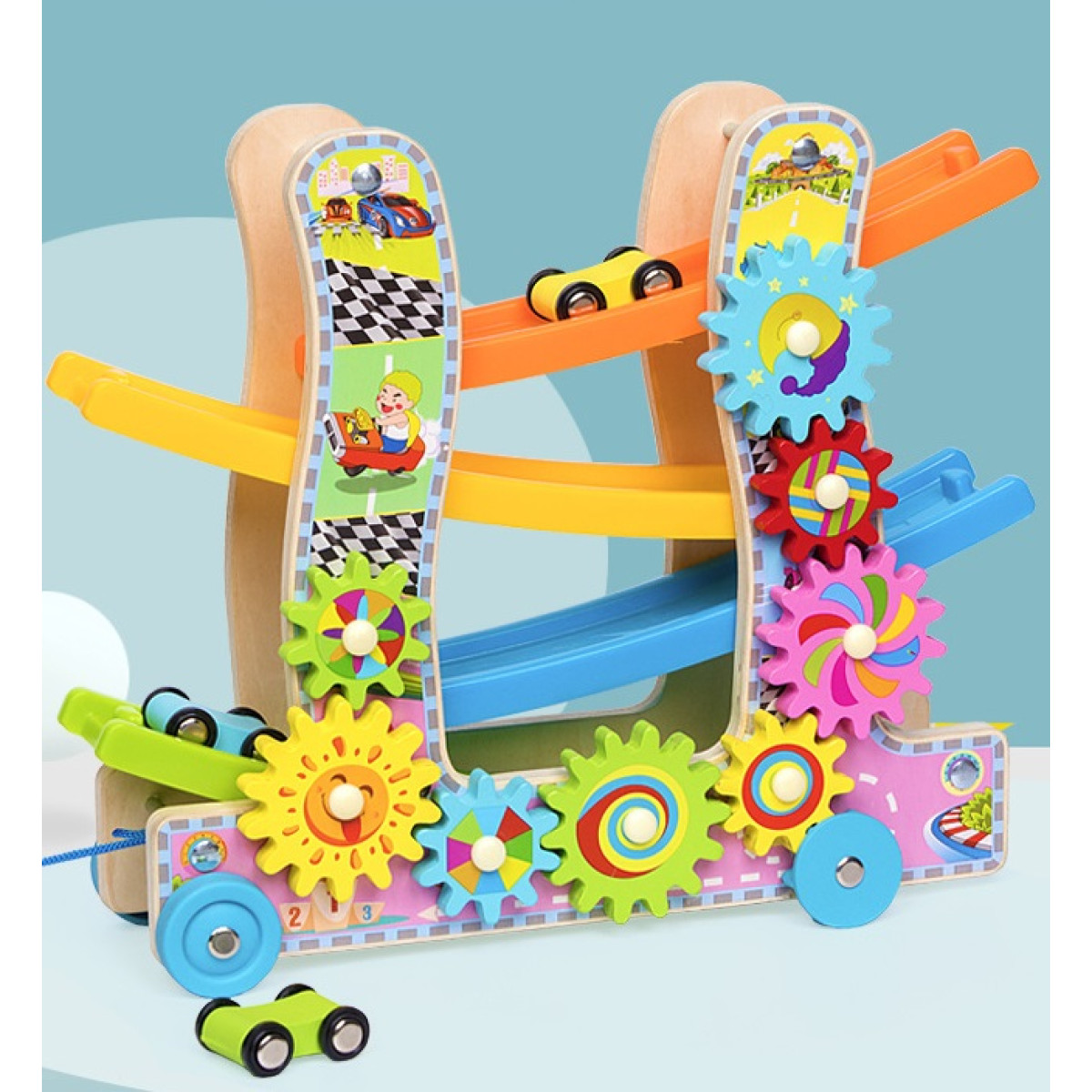 Automobilska tobogana je višestruki igrački uređaj koji daje malim užitke dok spuštaju svoje automobile. Ova zabavna tobogana također ima oblik vozila koji omogućuje djeci da je gurnu ili povuku uz pomoć priložene konopce. Dok se igraju, maleni će se oduševiti vrtenjem obojenih zubića, što će potaknuti njihovu ručnu vještinu i maštariju. Ova igračka je odličan način za razvoj dječjih motoričkih sposobnosti i kreativnog razmišljanja