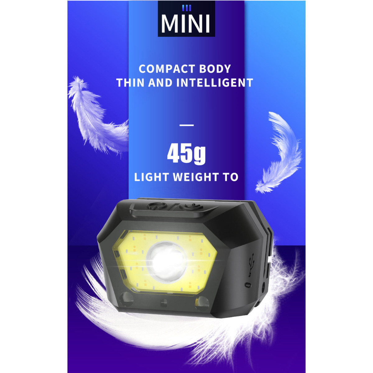 Naglavna Čelna LED Svetilka 400 lm, 1200 mAh, senzor