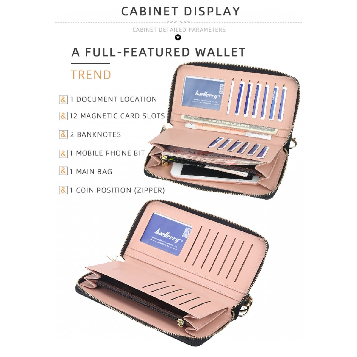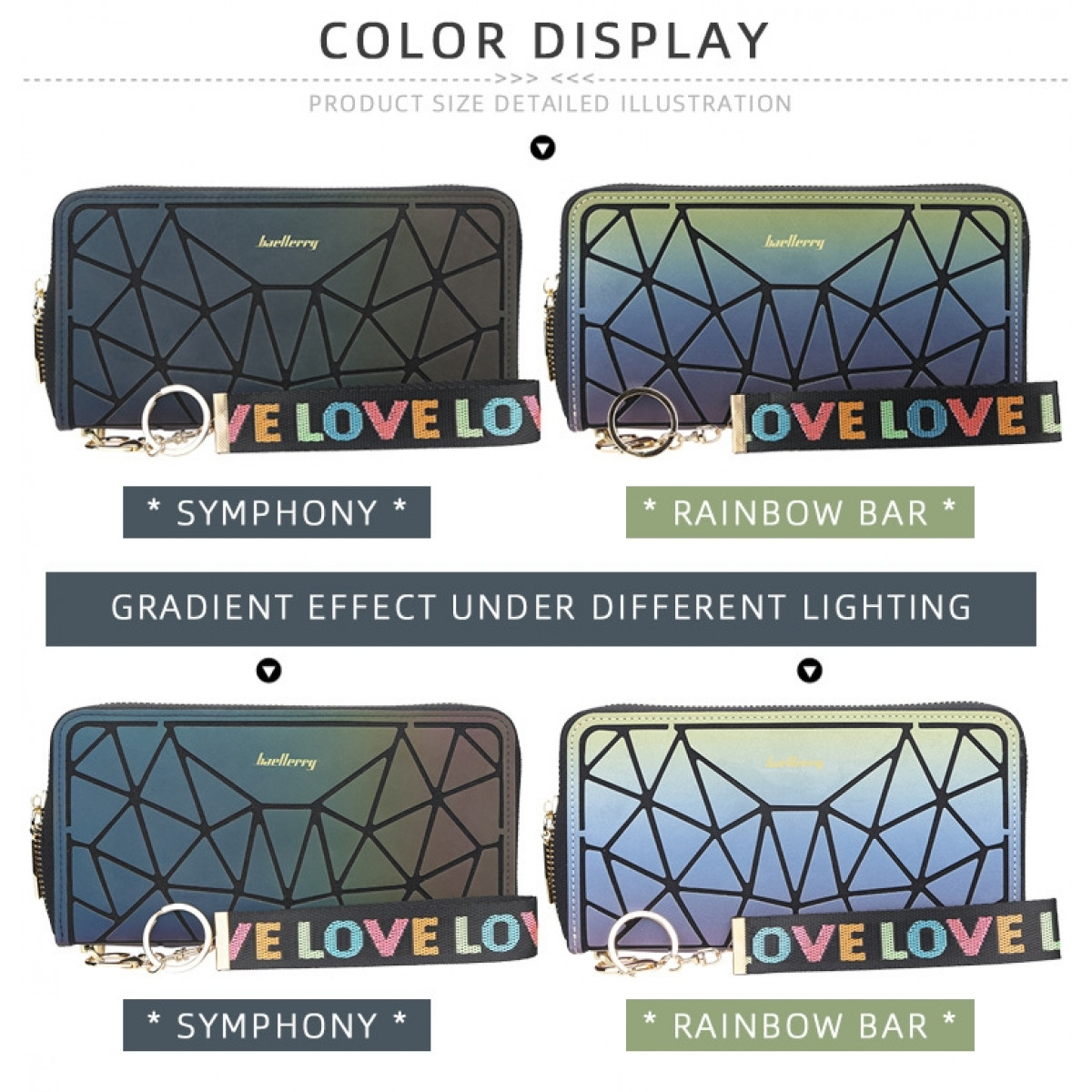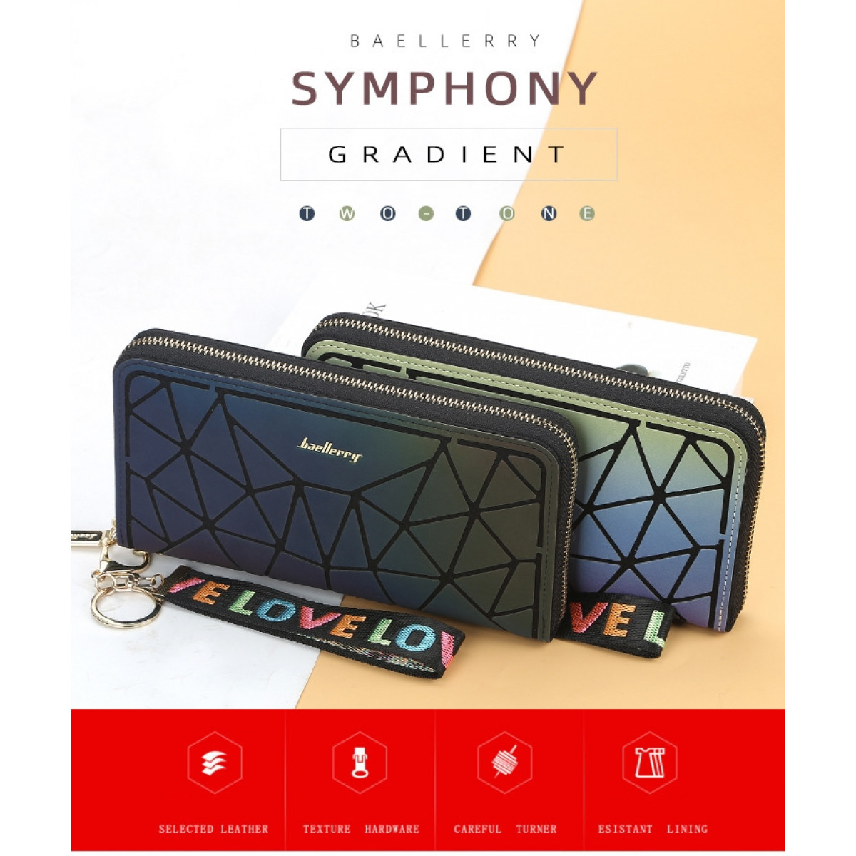 Ženski novčanik, Symphony, predstavljen je u novim mističnim bojama. Među tanjim je novčanicima, ali svejedno ga odlikuje prostranost. Ima pretince za osobnu iskaznicu, kreditne kartice, novčanice, kovanice i mobitel.