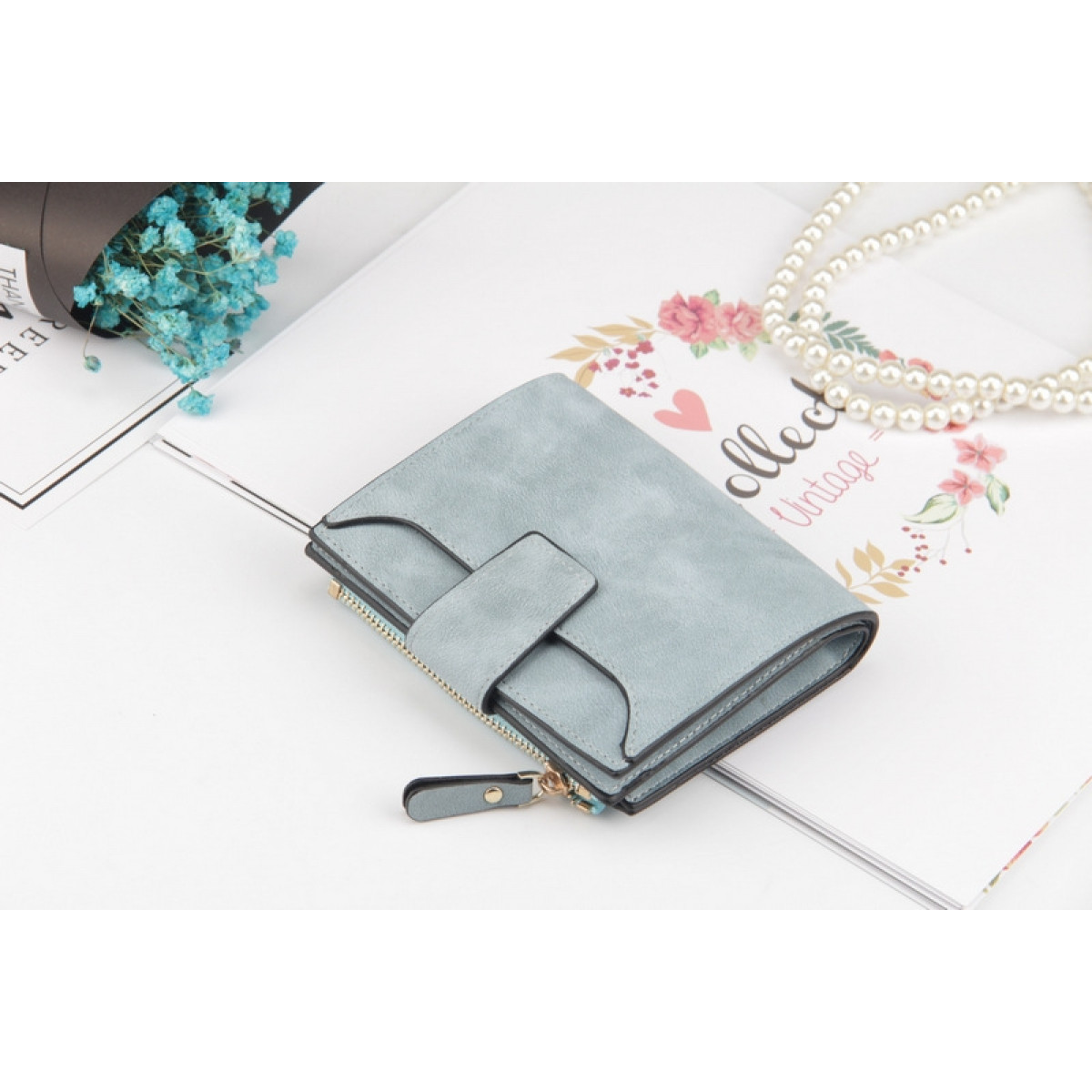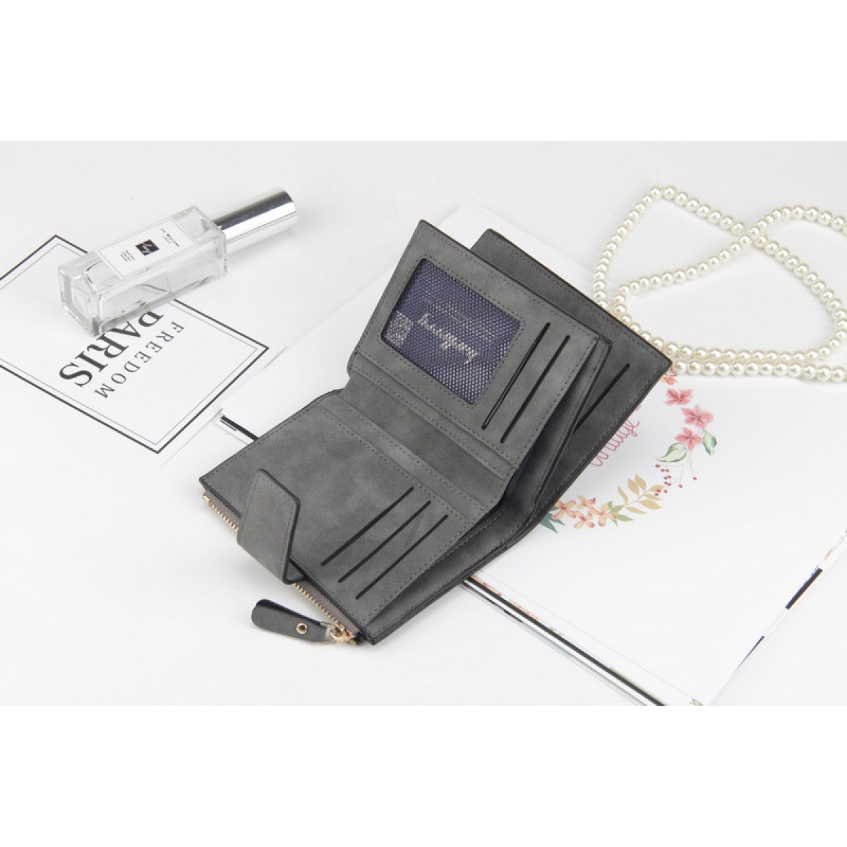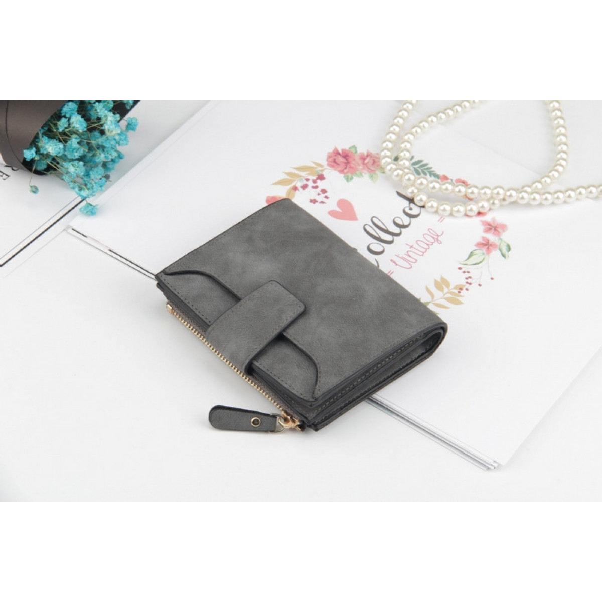 Kompaktni ženski novčanik s preklopnim remenom. Za one koji vole manje novčanike. Iako je novčanik manji, ujedno je i prostran. Ima mnogo pretinaca za kreditne kartice, pretinac za dokumente, džep s patentnim zatvaračem za kovanice i prostor za novčanice.