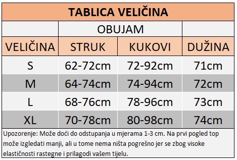 Ove su tajice izvrstan komad odjeće za vašu ljetnu garderobu. Pogodne za vježbanje, razonodu ili za lijep izgled. Tajice imaju srednje visok struk. Na bokovima imaju ušivene praktične džepove. Tajice su sašivene od mekog elastičnog materijala i lijepo pristaju uz tijelo.