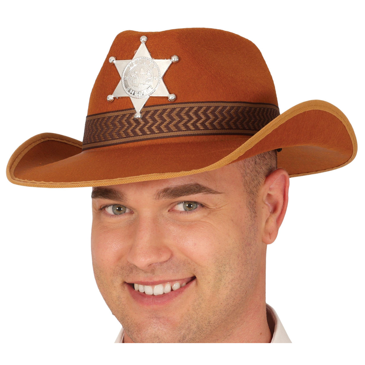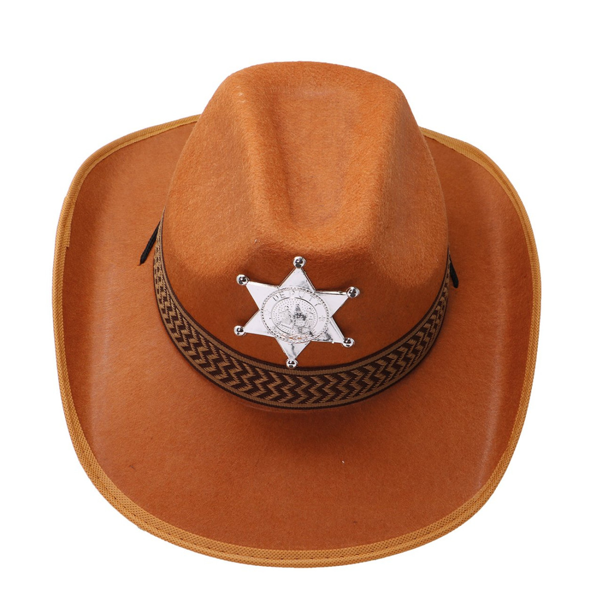 Muški kaubojski šešir savršen je izbor za sve ljubitelje Divljeg zapada! Svijetlosmeđa boja, savijeni rubovi, ukrasna traka s uzorkom i srebrna značkа šerifa stvaraju klasičan western izgled koji neće proći nezapaženo. Ovaj svestrani dodatak idealan je za maškare, tematske zabave ili scenske nastupe.