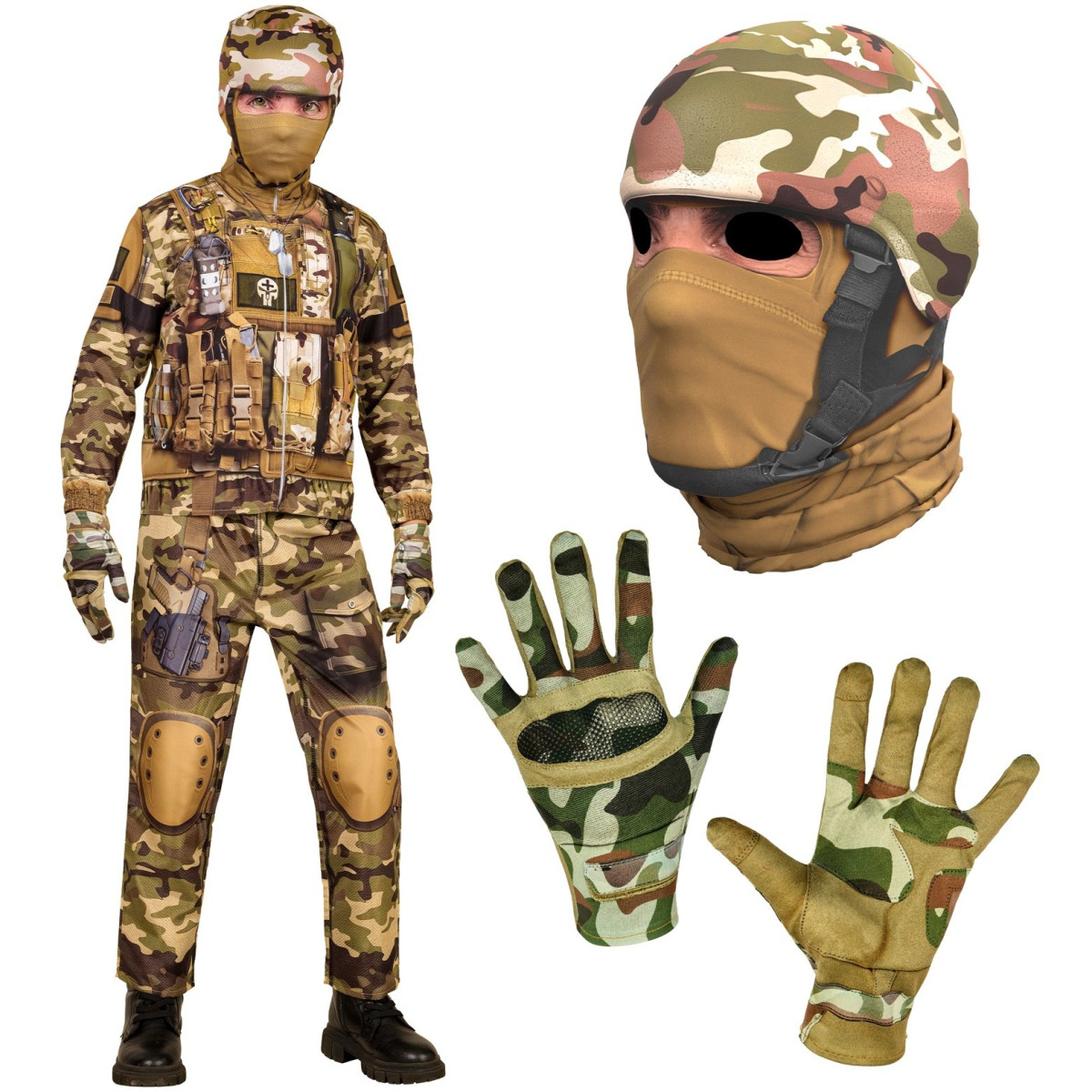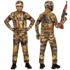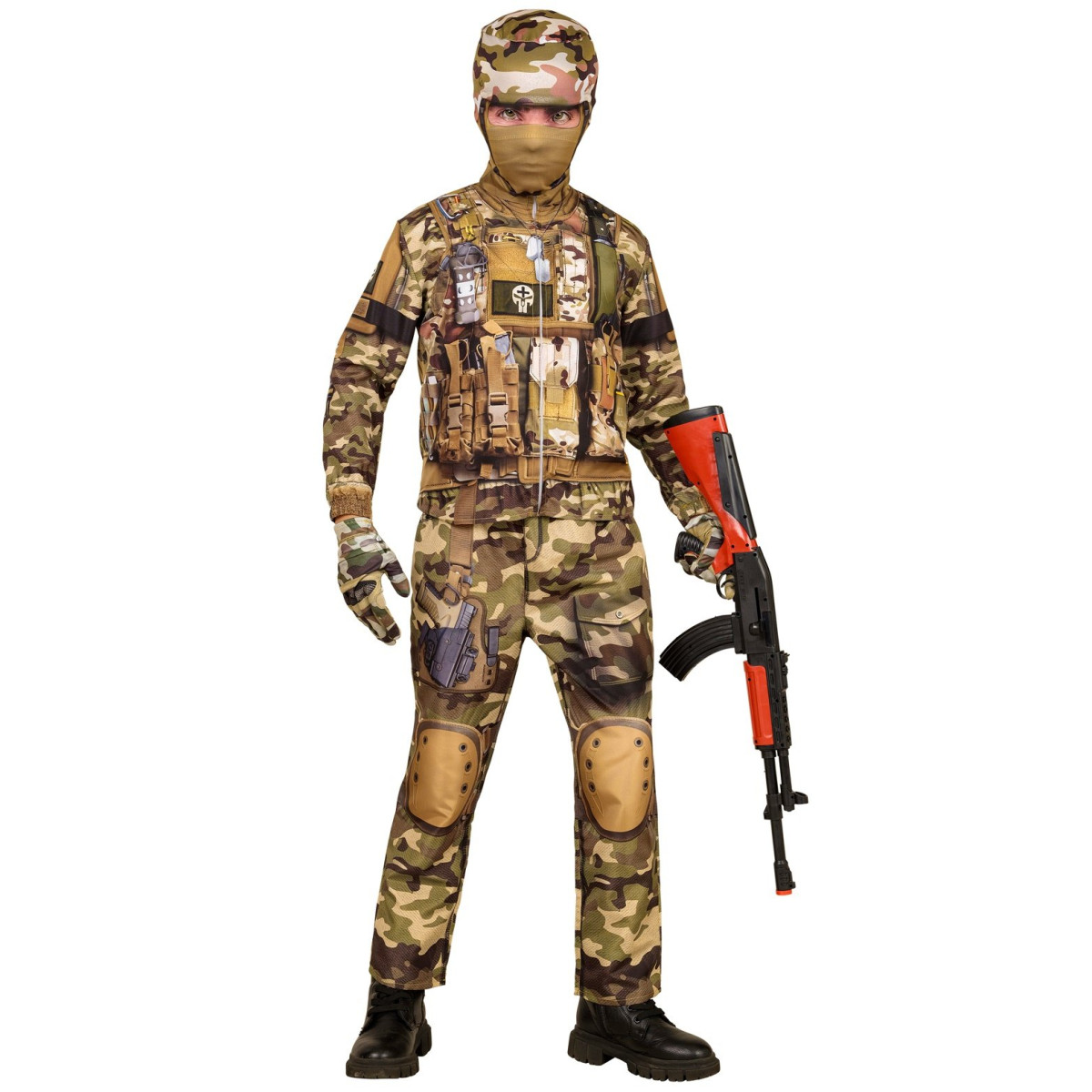 Dječji maskenbalski kostim vojnika je tiskani komplet u maskirnom uzorku koji će oduševiti sve male junake. U kompletu se nalazi vojna jakna, hlače, rukavice i maska, koji zajedno stvaraju realističan izgled vojnika. Kostim je izrađen od laganih materijala i ima udoban kroj, što omogućuje nesmetano kretanje i cjelodnevno nošenje. Odličan izbor za maškare, školske priredbe ili tematske igre kod kuće.