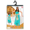 Ženski kostim Egipatske kraljice elegantan je i očaravajući, dizajniran za profinjeni izgled kraljevske vladarice Nila. Kostim uključuje tirkiznu haljinu, zlatni pojas, bogato ukrašen ovratnik, narukvice, veličanstveno pokrivalo za glavu i odgovarajući plašt. Savršen izbor za karnevalske zabave, tematske večeri ili kazališne predstave!