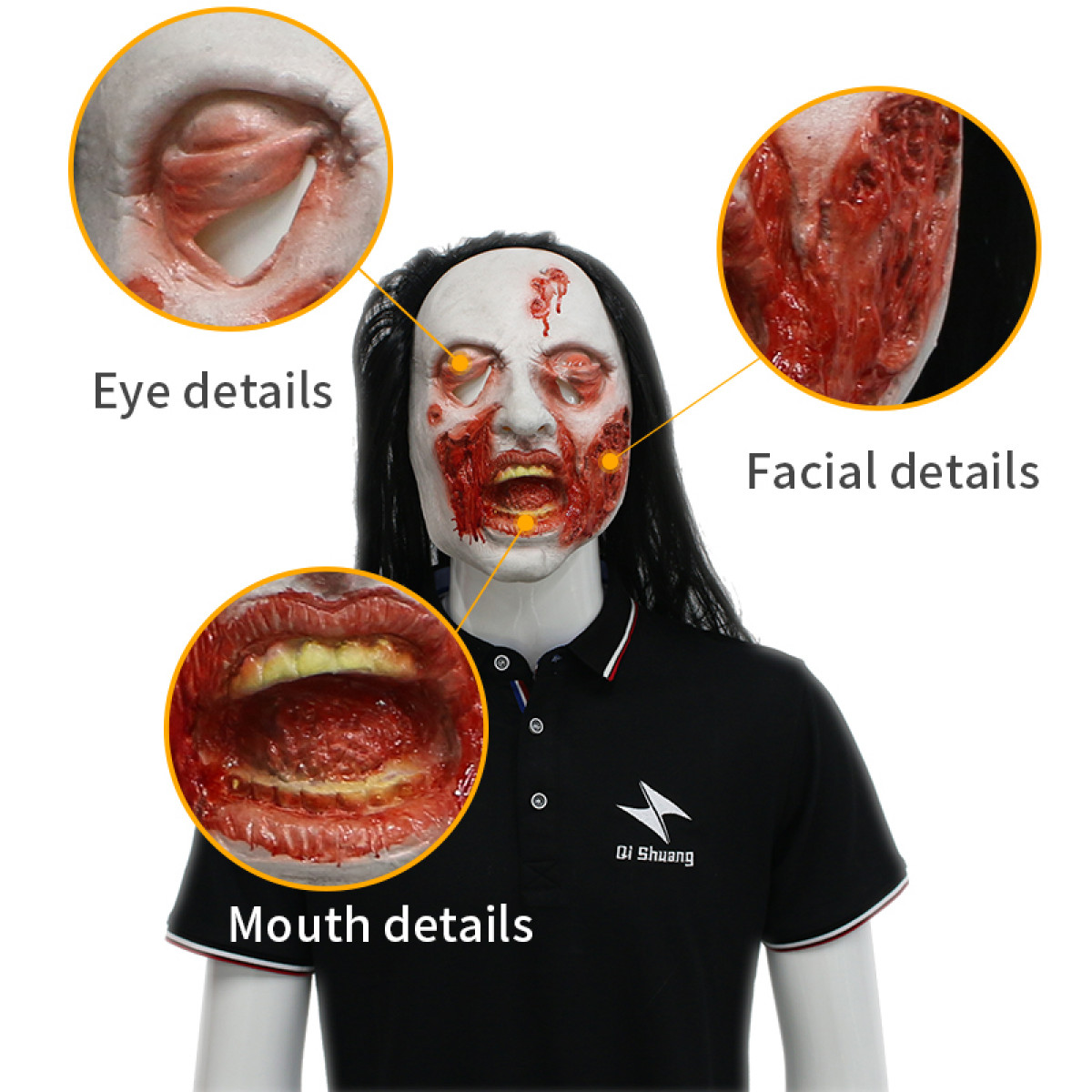 Kad stavite zombi masku ove Noći vještica, poslat ćete dosta ljudi u stanje panike. Sakrijte svoj identitet na zastrašujući način kad obučete našu trošnu, krvavu zombi masku za lice. Pri kupnji dobivate bijelu masku za lice s ranama i pričvršćenom crnom dugom kosom. Ova užasna maska ​​bit će savršena za ovogodišnju Noć vještica.